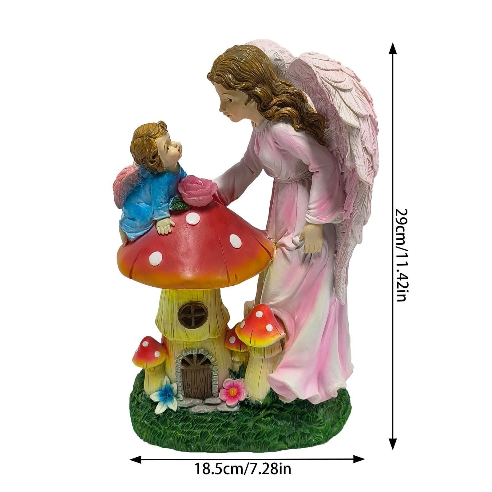 ガーデンライト ガーデンオーナメント きのこの家 天使 エンジェル 子供 ソーラー 防水 庭 芝生 玄関 ポーチ ガーデニング お祝い ギフト