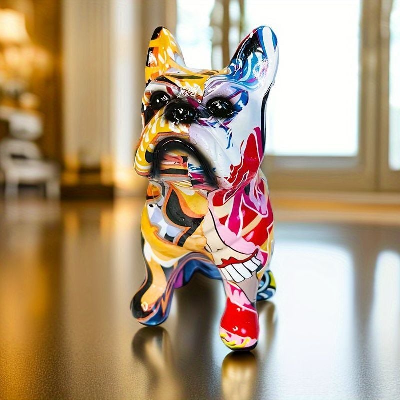 カラフルでモダンなデザインが目を引くおしゃれなインテリアアイテムです。お座り姿勢のフレンチブルドッグが可愛らしく、リビングや玄関、ダイニングなどのお部屋に置くだけで、一気におしゃれな空間に仕上げることができます。
