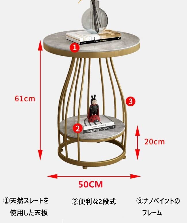 サイドテーブル 2段式 直径50cm ゴールド フレーム おしゃれ かわいい 北欧 コーヒーテーブル ホテルライク 大理石 ラグジュアリー