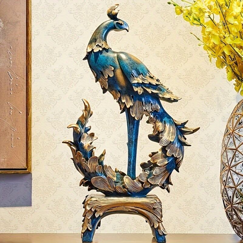 オブジェ 鳳凰 フェニックス 小さめ おしゃれ かわいい 置物 インテリア 北欧 縁起物 工芸品 装飾品 プレゼント 黄金 ゴールド ブルー