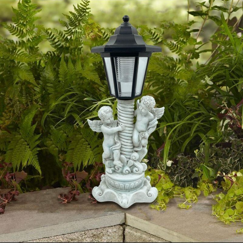 ガーデンライト ソーラーライト 天使 レトロ ローマ 玄関 ポーチ ベランダ ガーデニング 室内 インテリア 装飾 ホワイト 白