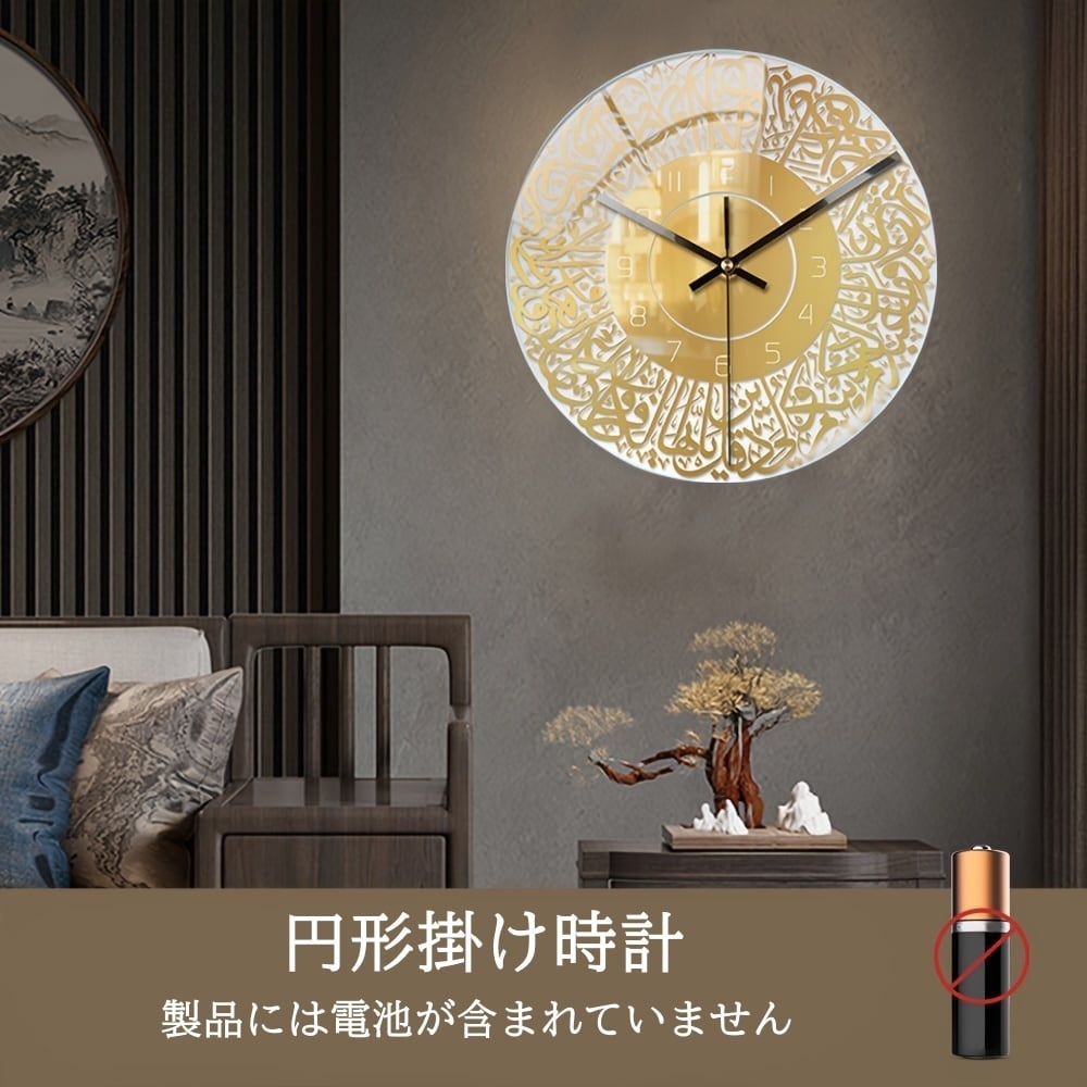 掛け時計 壁掛け 薄型 アラビア語 イスラム ブラック ゴールド 黒 金 ラウンド 静音 リビング ダイニング モスク 祈り インテリア