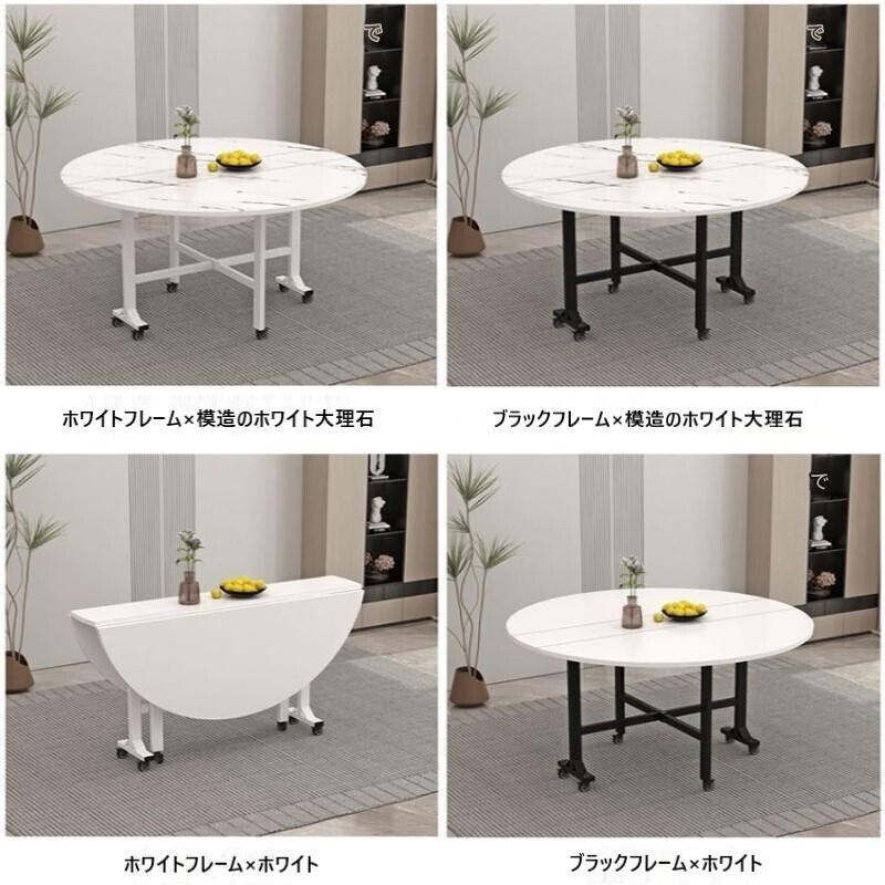 ダイニングテーブル 3パターン デザイン 棚 ラック 直径80cm おしゃれ インテリア 大理石風 折りたたみ 可動式 キャスター付き シンプル キッチン リビング ホワイト ブラック