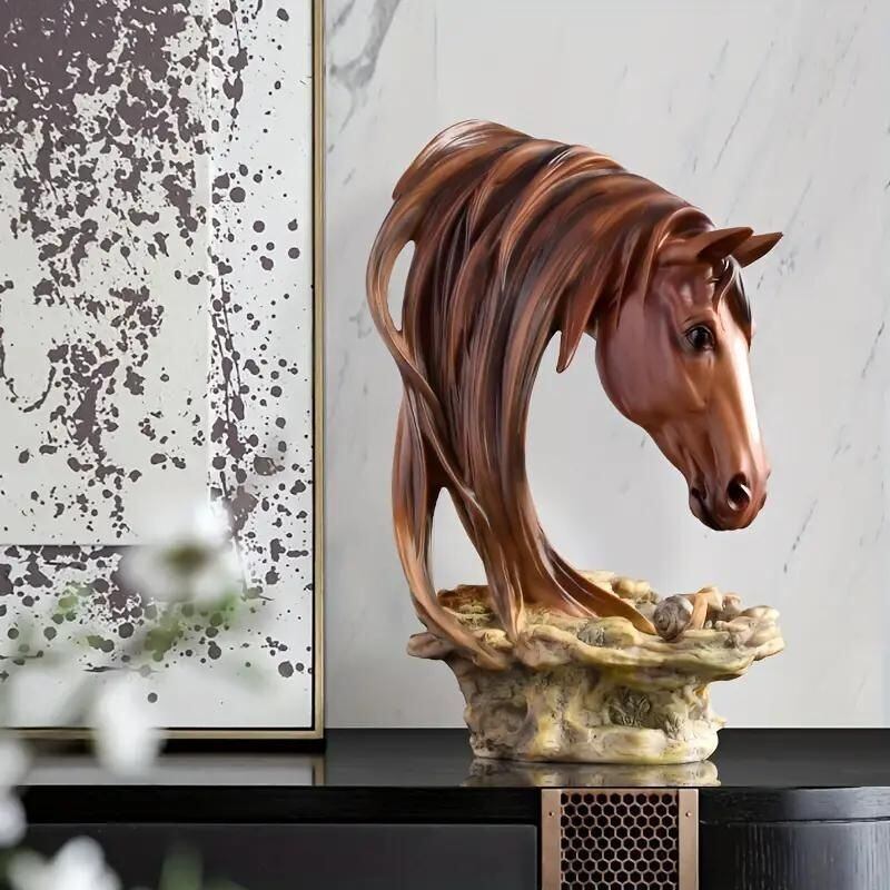 馬の印象的なヘッドをリアルな質感で再現したオブジェです。シンプルながら存在感抜群のデザインは、書斎やリビング、エントランスなど、どこに飾ってもおしゃれな雰囲気を演出してくれます。胸像風のホースヘッドデザインは、どこかノスタルジックでありながらもモダンな印象を与えます。また、ギフトやプレゼントとしても喜ばれること間違いなしです。
