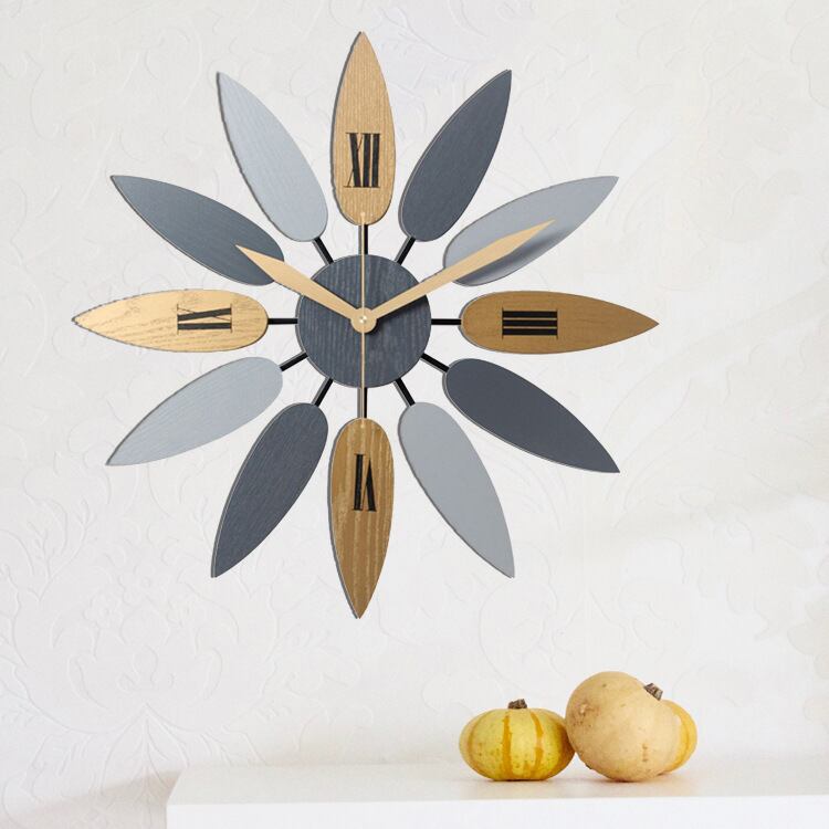 掛け時計 花 葉 モチーフ シンプル 静音 アナログ おしゃれ かわいい インテリア 北欧 壁掛け 時計 ウォール クロック 無垢材 コンパクト