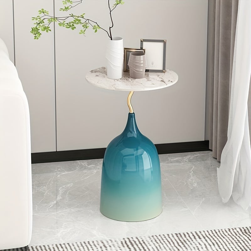 サイドテーブル シンプル ユニーク 大理石調 スレート天板 おしゃれ かわいい インテリア 北欧 スリム コーヒーテーブル ブルー 4-7