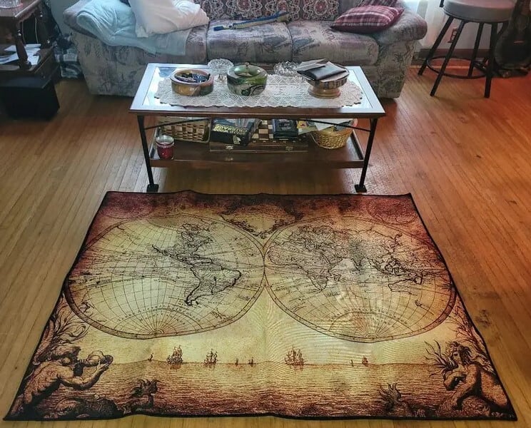 レトロな雰囲気漂う航海マップをモチーフにしたカーペットです。