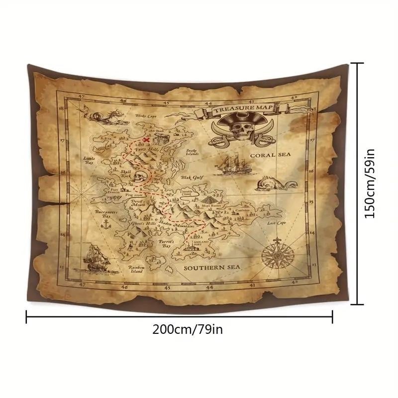 タペストリー 布 ファブリックポスター 海賊 宝の地図 壁掛け ホームデコレーション 大判スカーフ おしゃれ かわいい