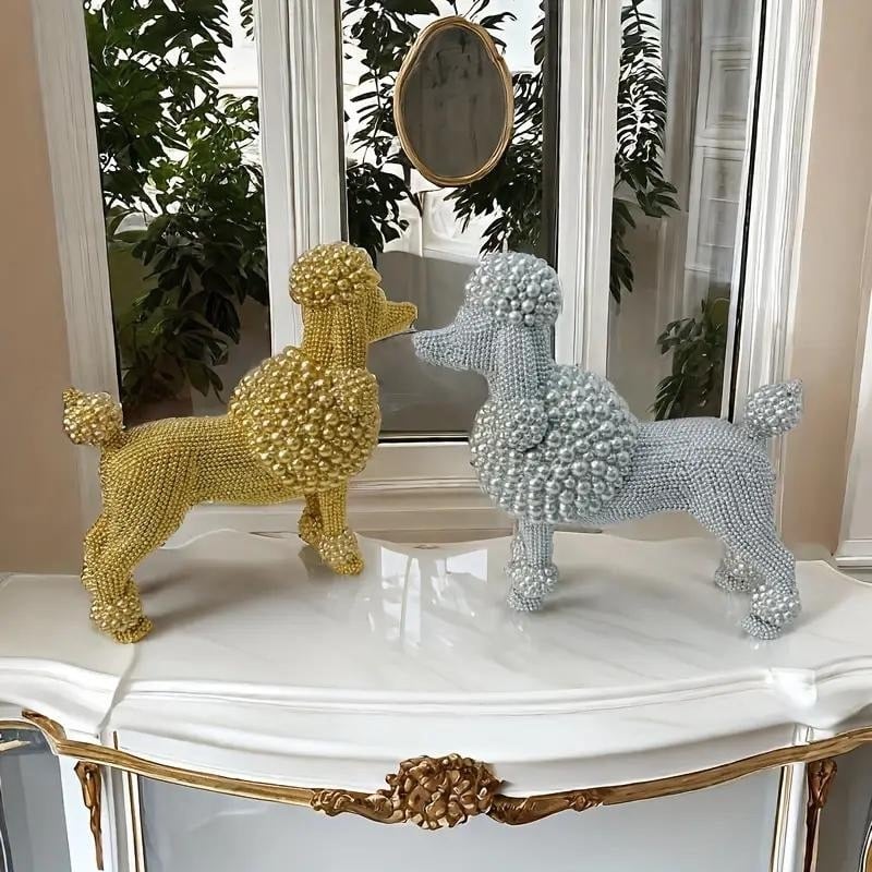 卓上オブジェ 置物 プードル アニマル 動物 犬 ビーズ細工風 インテリア ゴールド シルバー パーティー 飾り おしゃれ かわいい シンプル アート