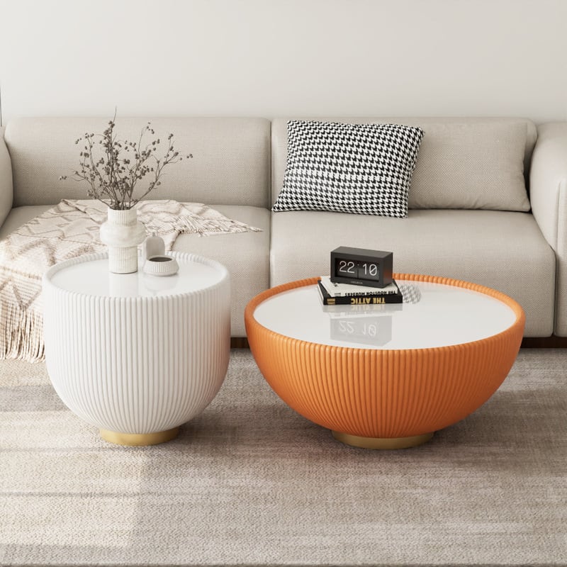 サイドテーブル おわん型 大きめ おしゃれ かわいい インテリア 北欧 コンパクト コーヒーテーブル ナイトテーブル 白 ホワイト オレンジ
