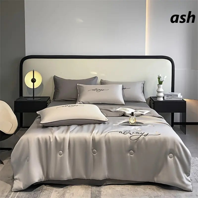 キルトケット シルク調 夏用 おしゃれ かわいい インテリア ひんやり 掛け布団 洗える 220cm x 180cm 230cm x 200cm グレー アッシュ 4-7