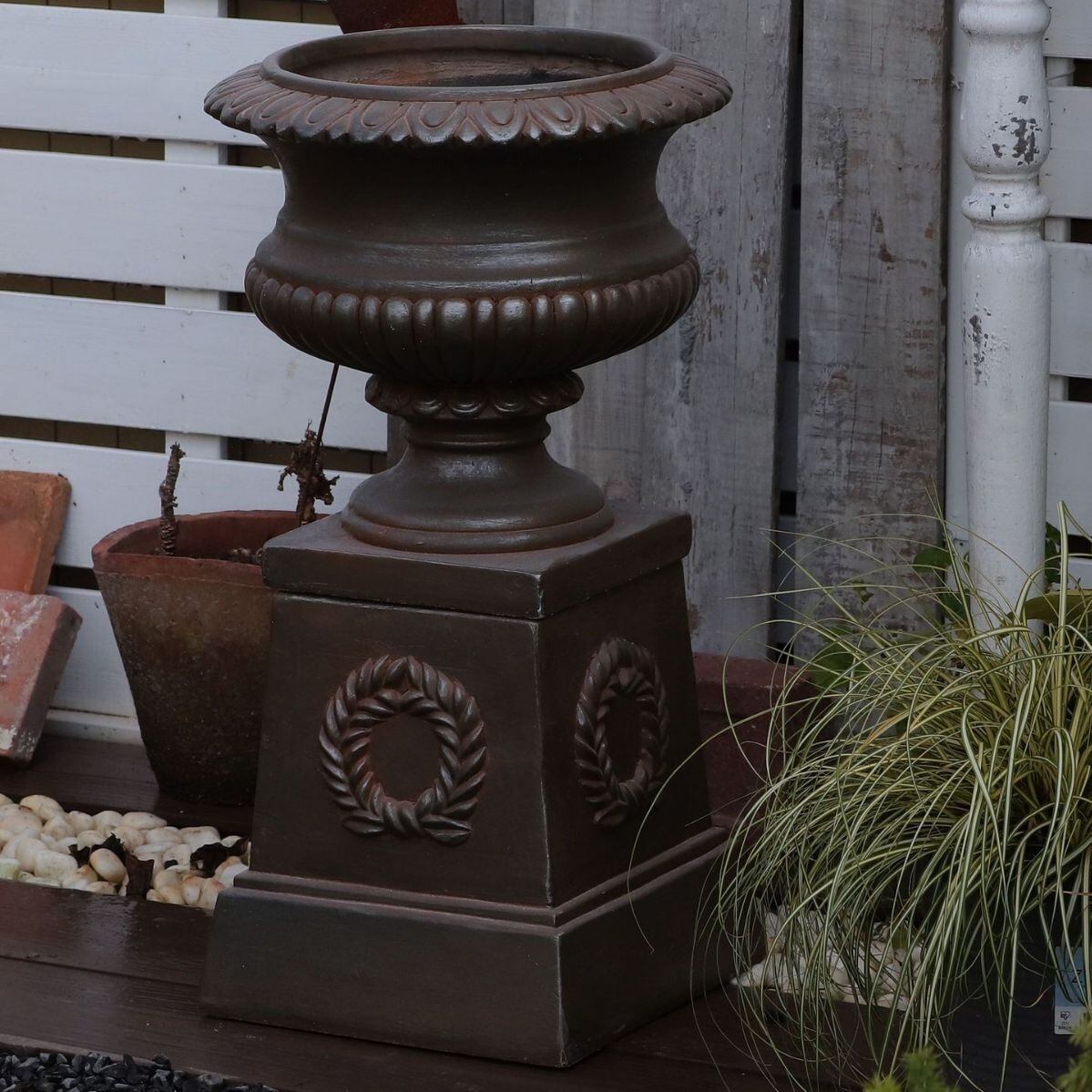 ガーデンオーナメント ヴィンテージ調 レトロ調 台座付き おしゃれ フラワーポット 大きい 鉢 アンティーク ヨーロッパ 西欧 デザイン 彫刻 手作り 雰囲気 ガーデニング 庭 デコレーション 屋外 玄関 耐久性 贈り物