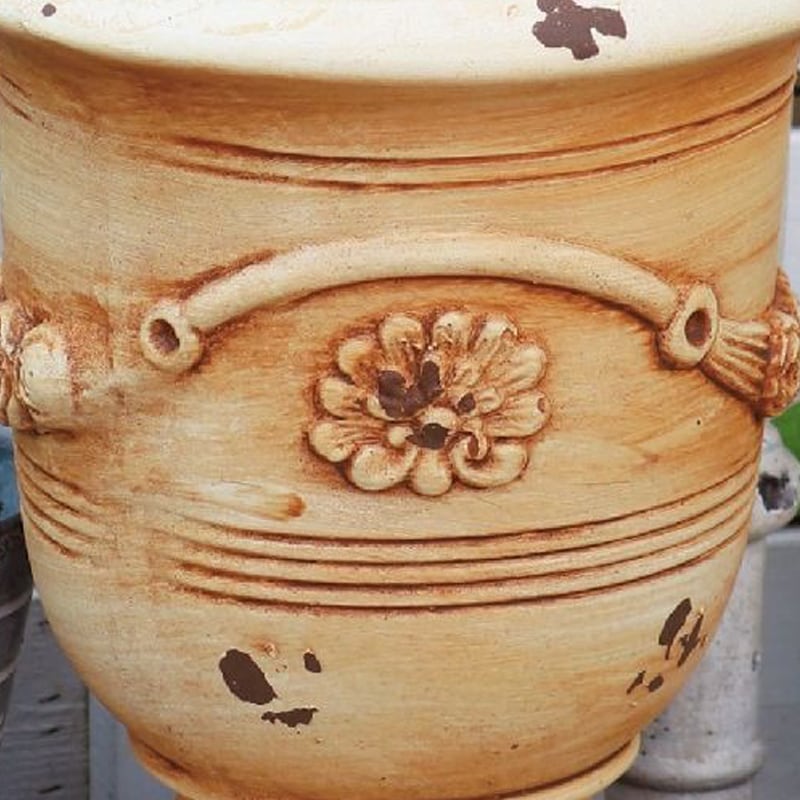ガーデンオーナメント ヴィンテージ調 レトロ調 おしゃれ フラワーポット 大 小 鉢 アンティーク ヨーロッパ 西欧 フラワーモチーフ デザイン 彫刻 手作り 雰囲気 ガーデニング 庭 デコレーション 屋外 玄関 耐久性 贈り物