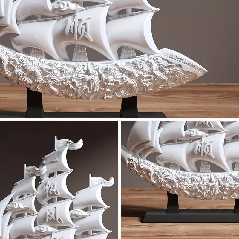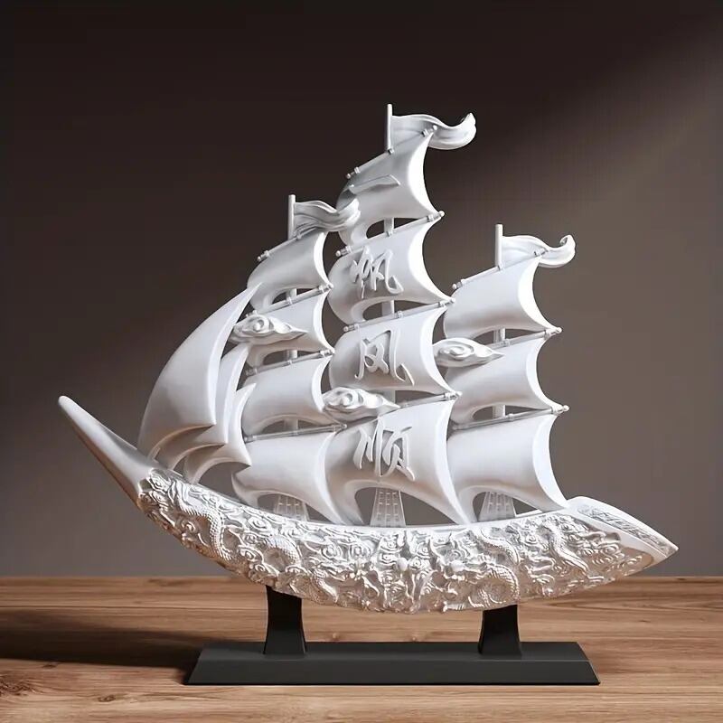 卓上オブジェ 帆船 白 置物 船 インテリア デコレーション リビングルーム ダイニングルーム ベッドルーム 書斎 玄関 ショップ ホテル 豪華 大きい 目立つ 縁起物 装飾 贈り物