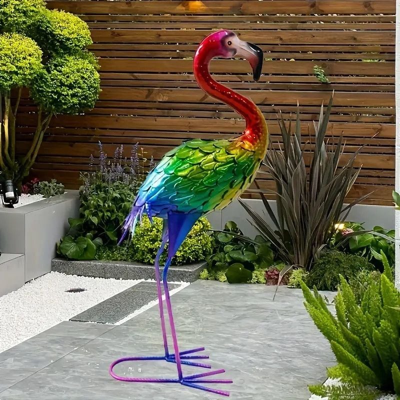 ガーデンオーナメント オブジェ フラミンゴ 置物 庭 屋外 金属製 モニュメント デコレーション 芝生 カラフル ガレージ おしゃれ かわいい