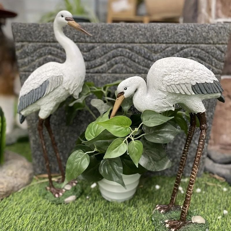 ガーデンオーナメント 白い鳥 鶴 オブジェ 置物 庭 屋外 デコレーション モニュメント おしゃれ 2種類 モダン デザイナーズ