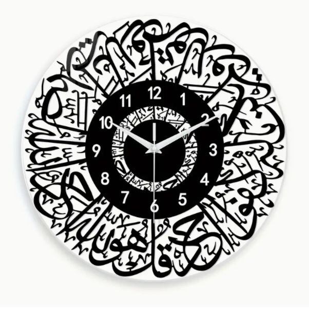 掛時計 インド文字 アラビア文字 イスラム ムスリム エスニック 壁時計 ウォールクロック おしゃれ ブラック 静音 電池別売り 見やすい 上品