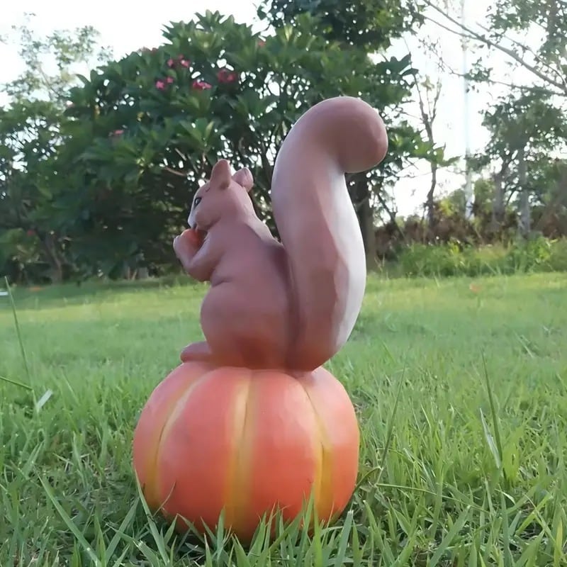 ガーデンオーナメント オブジェ 置物 りす かぼちゃ ハロウィン 庭 ガーデニング 飾り デコレーション 玄関 ベランダ 屋外 自然 動物 かわいい おしゃれ 樹脂 贈り物