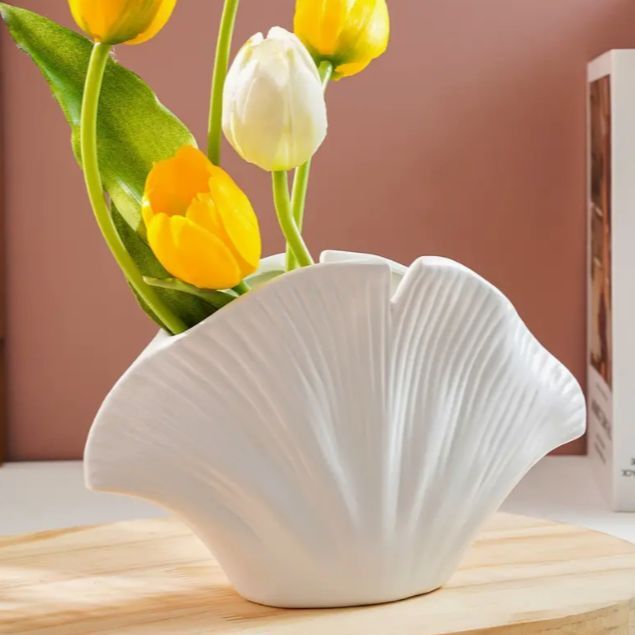 お気に入りの花々を美しく飾るための、貝がら型の花瓶。上品で可愛らしい見た目は、テーブルやリビング、玄関などのインテリアを一層華やかに彩ってくれます。割れない素材で安心してお使いいただけ、きらきらと輝くゴールドとホワイトの組み合わせがアンティーク風の雰囲気を演出します。