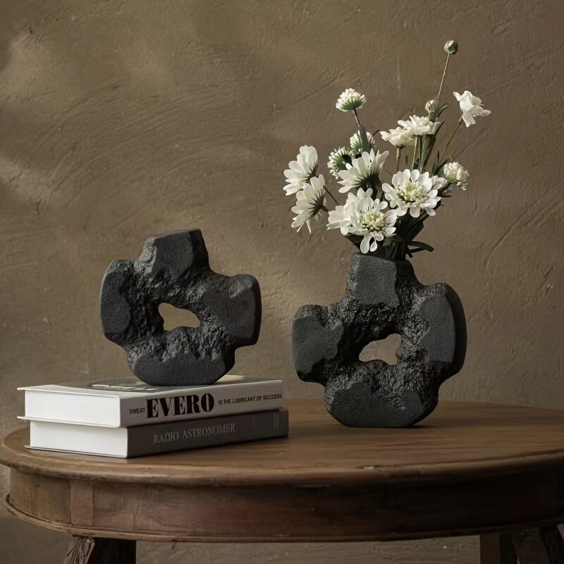 モダンフラワーベース 花瓶 アートインテリア 置物 花びん セラミック ナチュラル 自然 石 玄関 リビング おしゃれ シンプル 卓上 装飾 ミニ 4カラー