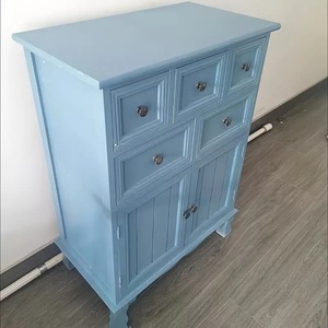 キャビネット 収納 引き出し 青 木製 幅60 奥行35 5段 北欧風 おしゃれ 可愛い 扉 レトロ チェスト リビング 寝室 キッチン ブルー 輸入家具