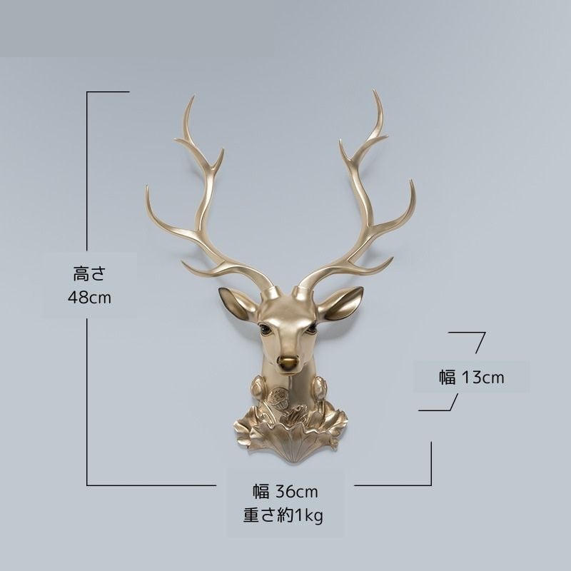 ゴールドカラーの鹿頭の装飾となっており、