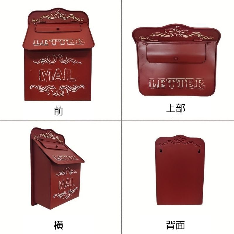 ポスト 壁掛け ヴィンテージ風 おしゃれ かわいい 郵便箱 郵便ポスト 郵便受け メールボックス 壁付け レッド グリーン ブラック