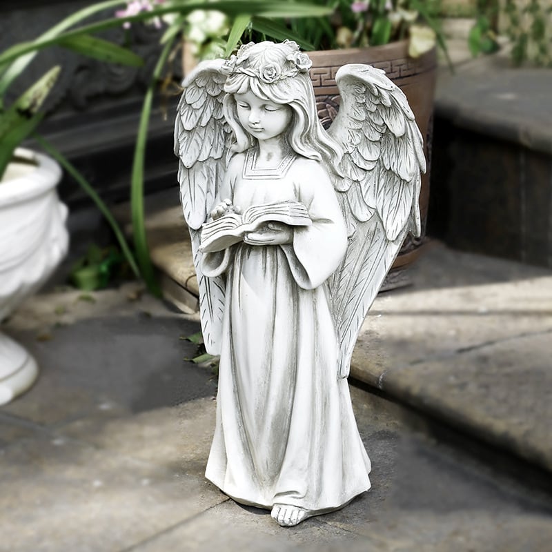 ガーデンオーナメント 天使 アンティーク調 ライト 付き おしゃれ かわいい 置物 ガーデン オブジェ エンジェル LED 照明 庭 ガーデニング