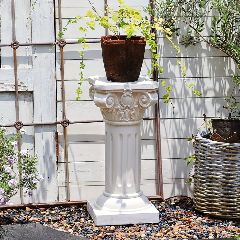 ガーデン オーナメント 古代ローマ風 円柱 おしゃれ かわいい 置物 オブジェ ガーデニング 植木鉢 プランター 庭 屋外 白 ホワイト 4-7