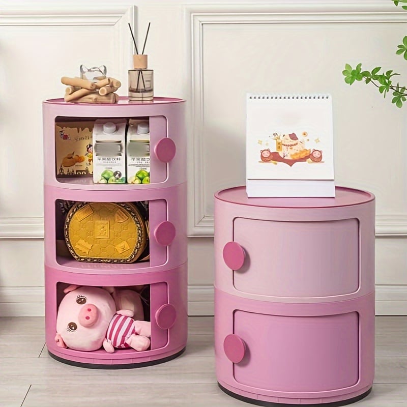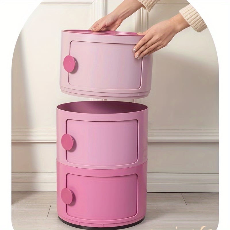 収納 ボックス 円柱 3段 スライド式扉 おしゃれ かわいい インテリア 北欧 ラック キャビネット リビング シンプル 積み重ね ピンク