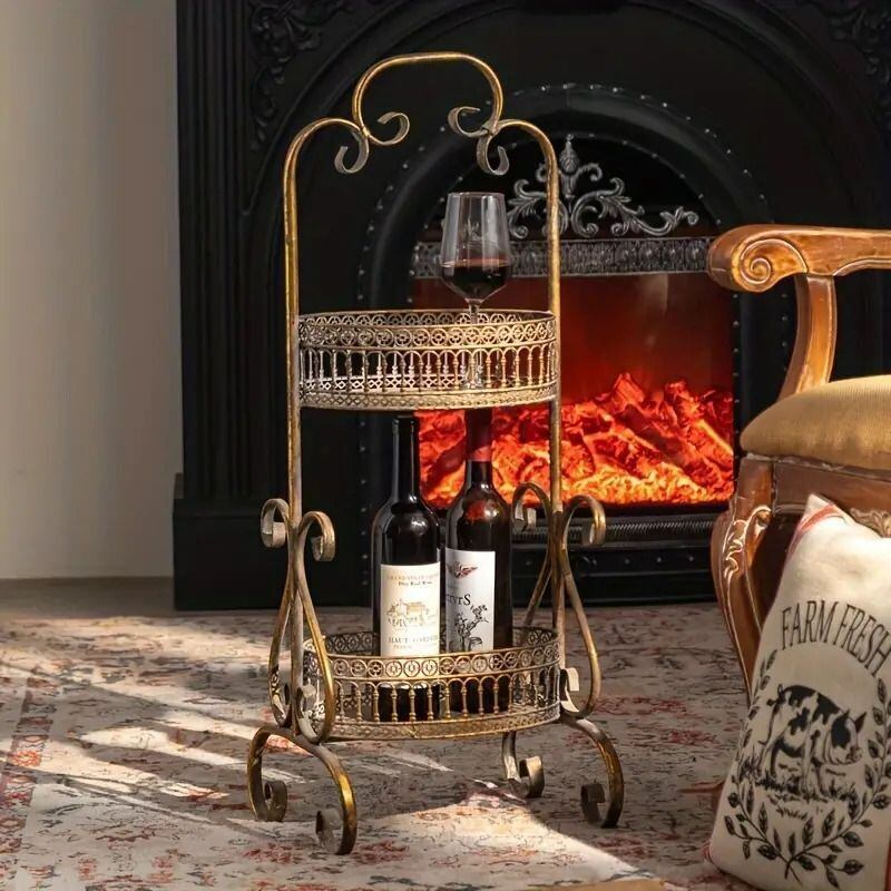 ワインラック カート ヴィンテージ調 おしゃれ かわいい インテリア フルーツスタンド シェルフ アンティーク オーガナイザー ゴールド