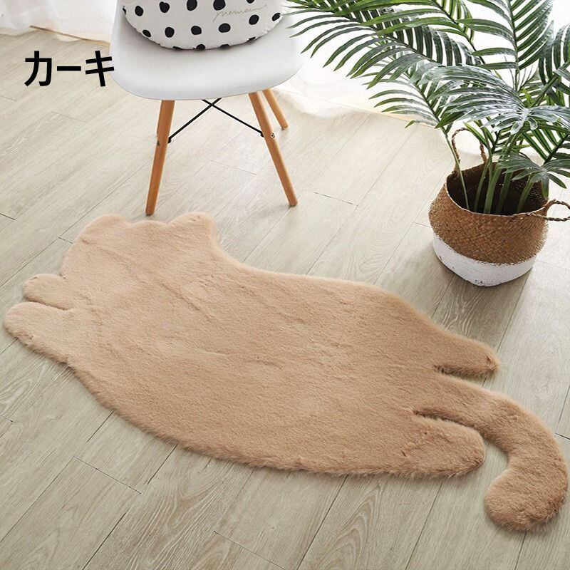 フロアマット ネコ おしゃれ かわいい インテリア フェイクラビットファー ラグ 玄関 マット モダン 動物 アニマル ホワイト ブラック