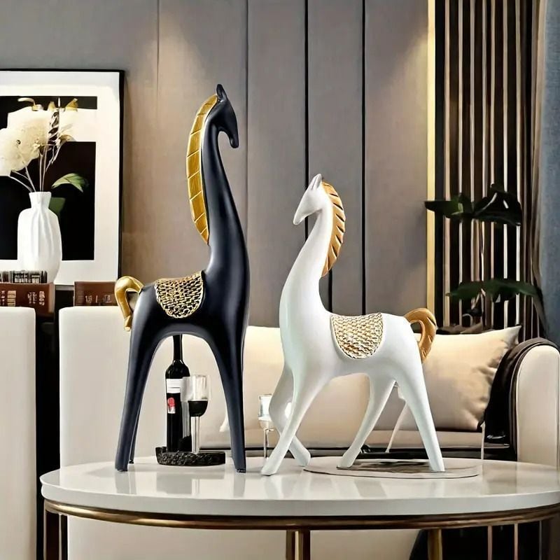 オブジェ 馬 2点セット おしゃれ かわいい インテリア 北欧 置物 動物 アニマル リビング 玄関 プレゼント 贈り物 ホワイト ブラック 4-7