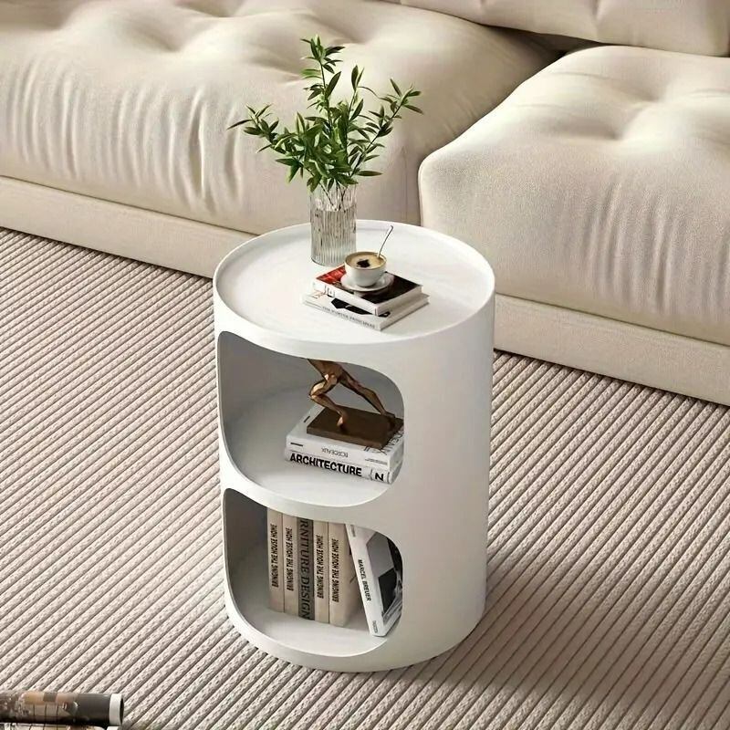 サイドテーブル モダン 北欧 収納付き 円形 おしゃれ かわいい インテリア シンプル コーヒーテーブル ブラック ホワイト クリーム 4-7