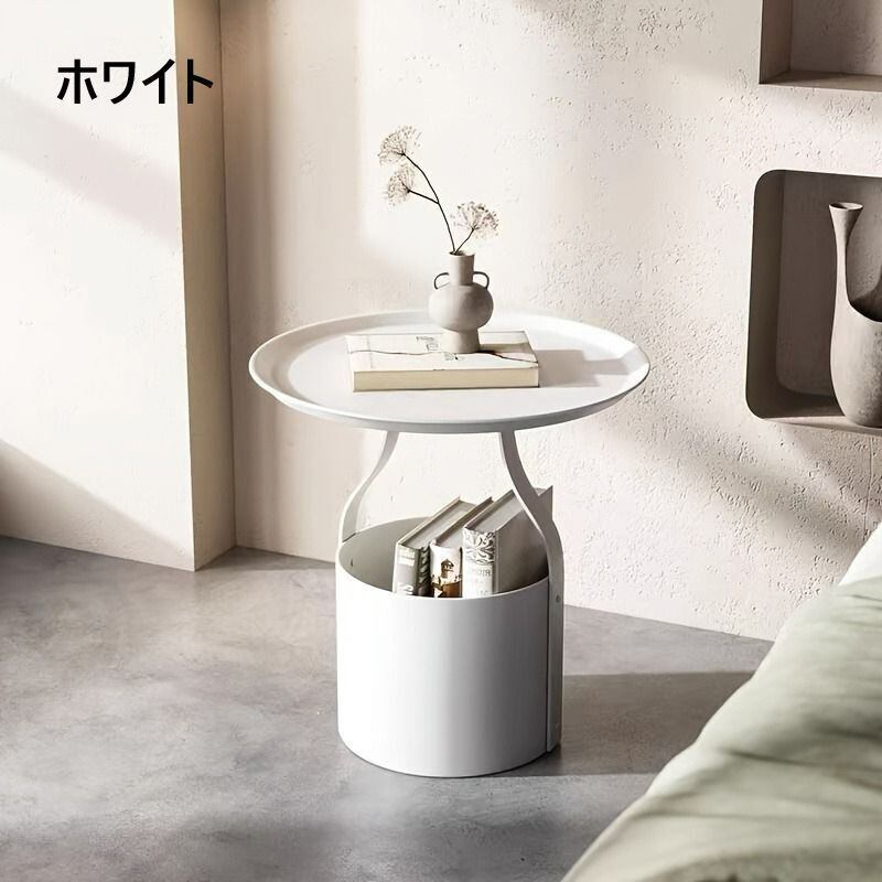 サイドテーブル スタイリッシュ 収納付き 円形 おしゃれ かわいい インテリア ラウンド モダン コーヒーテーブル オレンジ ホワイト 4-7
