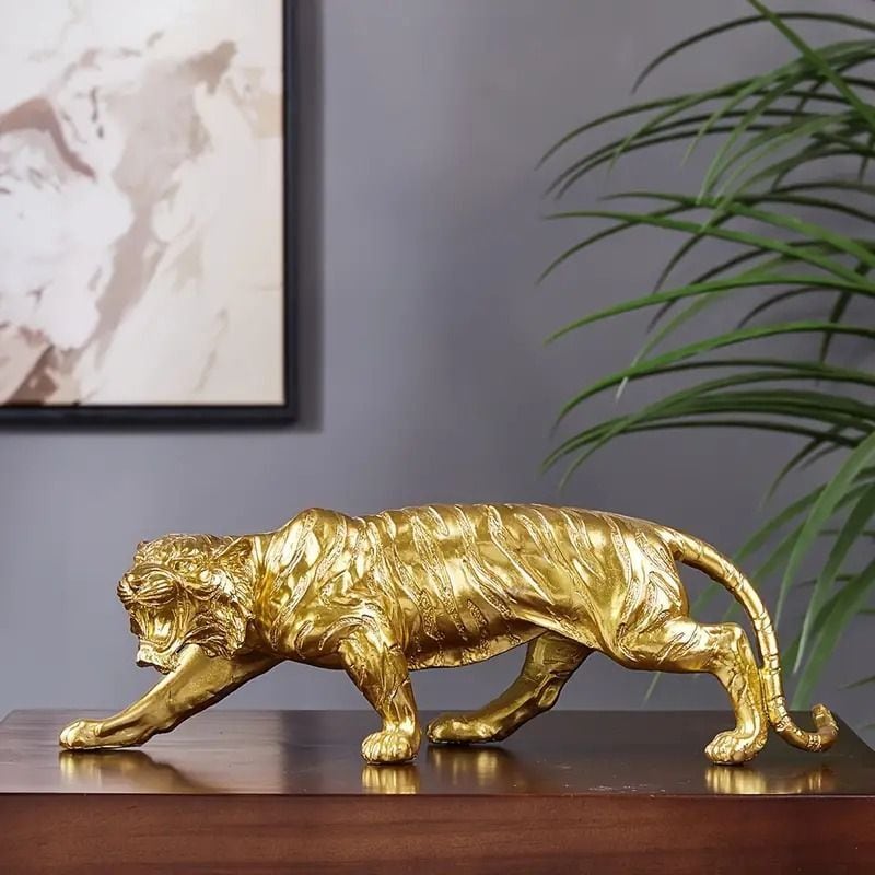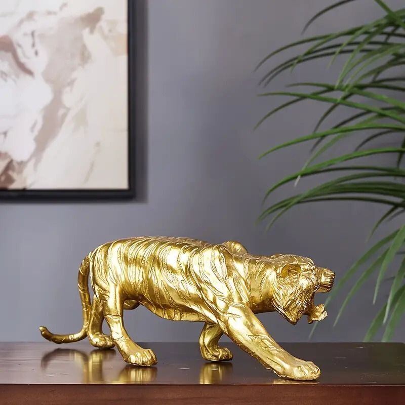 オブジェ 虎 トラ タイガー スタイリッシュ 高級感 ゴールド アニマル かわいい オーナメント 樹脂 インテリア お洒落 動物 屋内 4-7