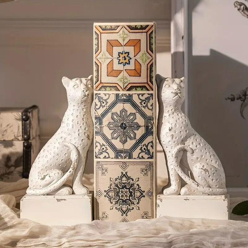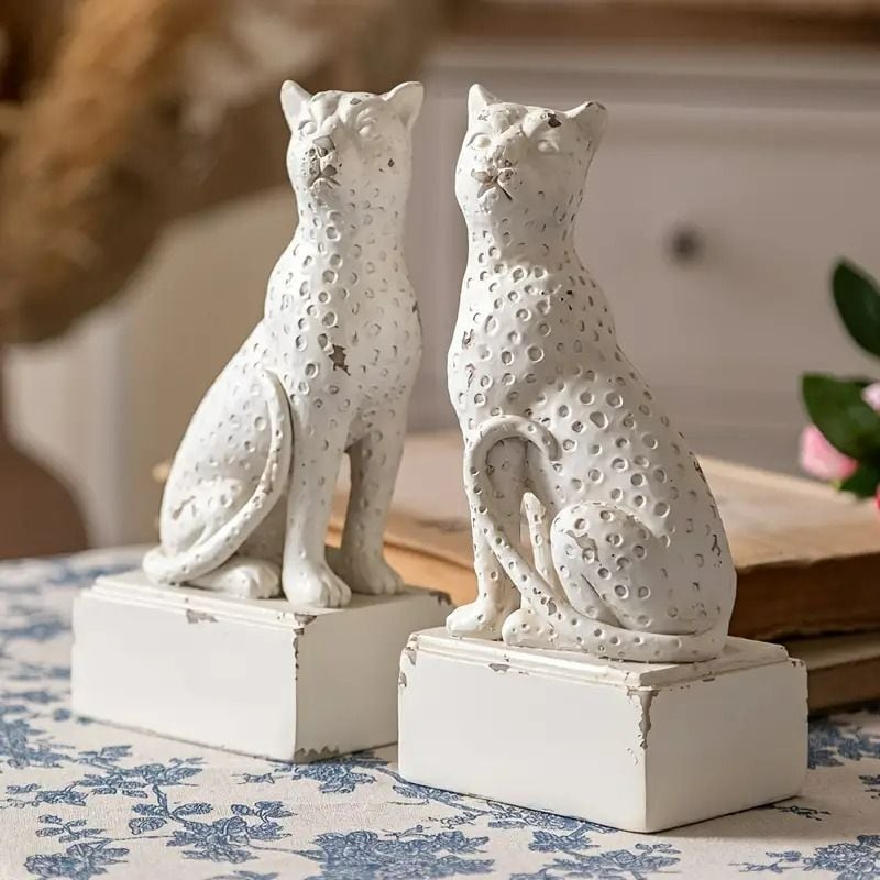 ブックエンド ヒョウ ヴィンテージ調 アメリカン 2個セット ホワイト アンティーク調 アニマル ディスプレイ SNS映え シャビーシック 4-7