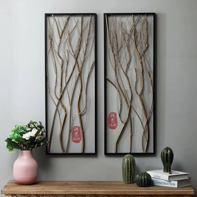 ウォールアート 2枚セット 中国風 お洒落 壁掛け インテリア アート 玄関 ホテルライク モダン シンプル 寝室 リビング ゴールド ブラック