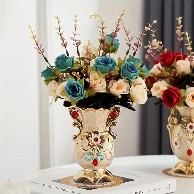 フラワーベース ヨーロピアン ヴィンテージ セラミック テーブルトップ バッドベース リビングルーム 玄関飾り センターピース 花