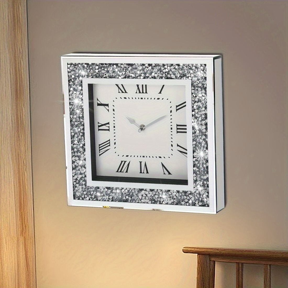 掛け時計 スクエア型 ダイヤモンド調 装飾 正方形 四角 壁掛け 時計 エレガント お洒落 かわいい モダン ウォール クロック シルバー 4-7