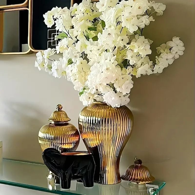 花瓶 ラグジュアリー エレガント ゴールド フラワーベース セラミック フラワーポット お洒落 モダン シンプル ホームデコレーション 4-7