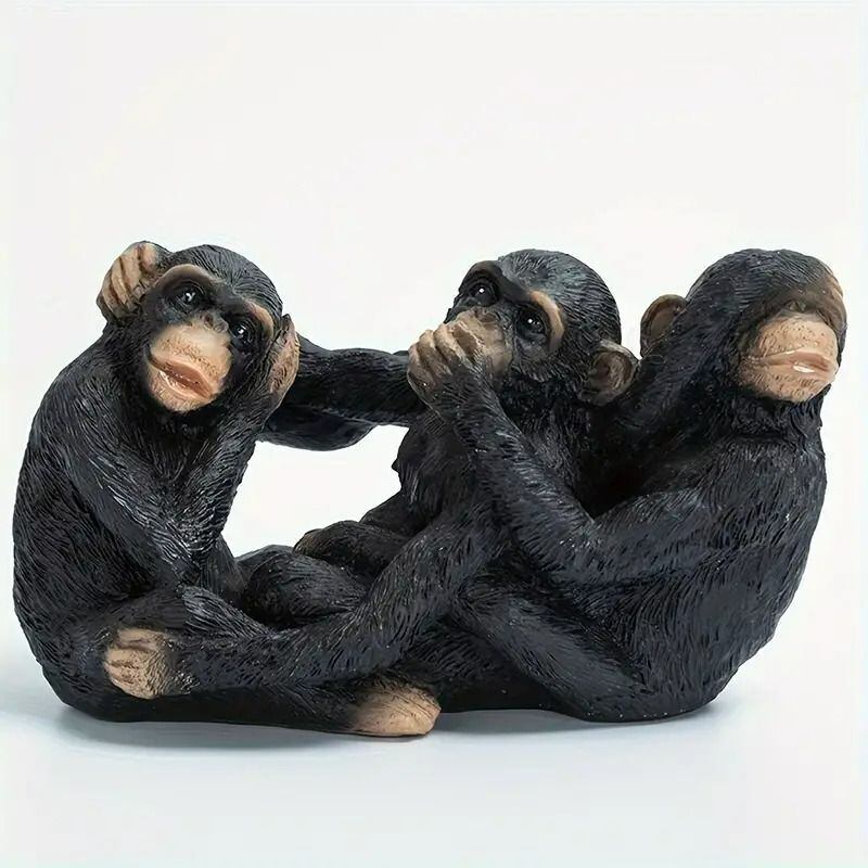 「見ざる聞かざる言わざる」をテーマにした、リアルな猿の樹脂製オブジェ。