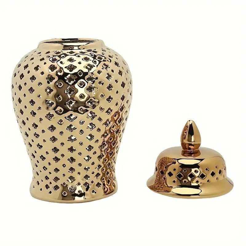 フリップトップ付きセラミックジャーは、エレガントなデザインと実用性を兼ね備えたインテリアアイテムです。美しいゴールドの仕上げが光り、どんな空間でも高級感を演出します!フリップトップのデザインにより、使いやすさも考慮されており、収納やディスプレイに最適です。おしゃれなお花や小物やお気に入りのアクセサリーを飾るだけでなく、特別な場面でのギフトにもぴったりです。