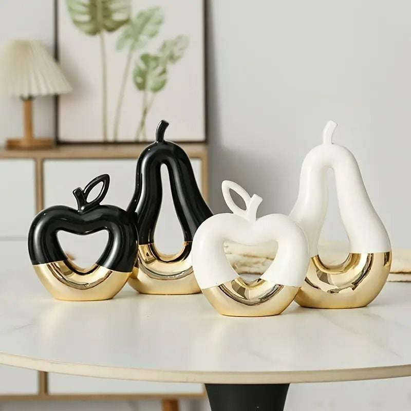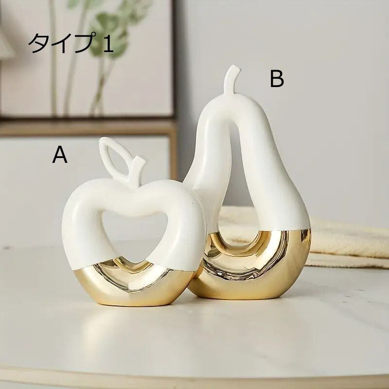 アップルとナシのオブジェは、ブラック×ゴールドとホワイト×ゴールドの2色展開で、シックなスタイリングが魅力的です!どんなインテリアにも映えるデザインで、特別な空間を演出します。