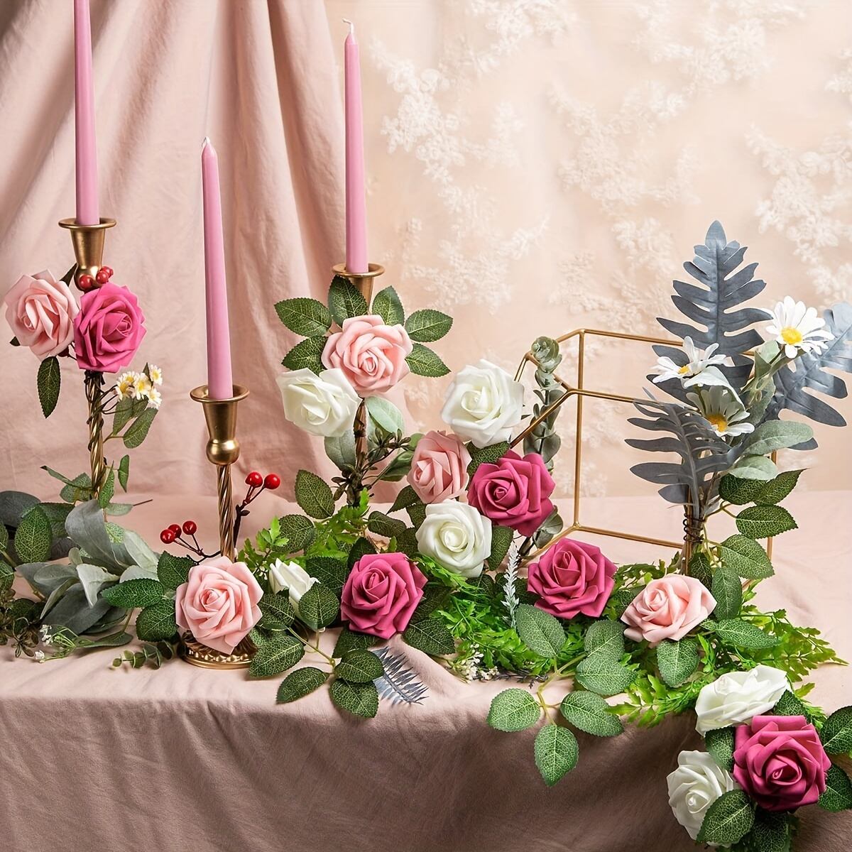 柔らかいピンクカラーが特徴のフェイクフラワーセット。