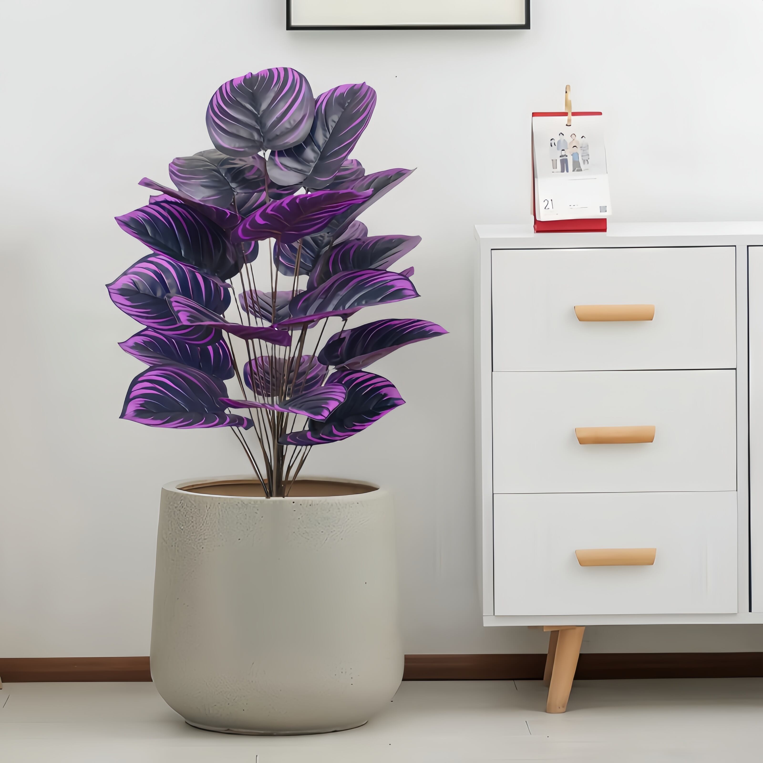 紫の葉が美しいカラテア風のデザインが特徴の人工観葉植物です。
