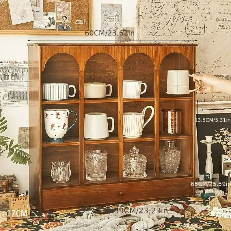 収納棚 木製 ヴィンテージ調 マグカップ収納 ティーカップ 引き出し ヴィンテージ調 収納ボックス キッチン リビング お洒落 インテリア 整理整頓 食器棚 コンパクト ナチュラル 4-7